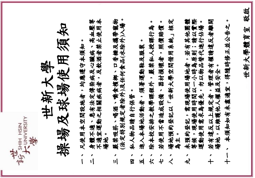 世新大學操場及室外球場使用須知